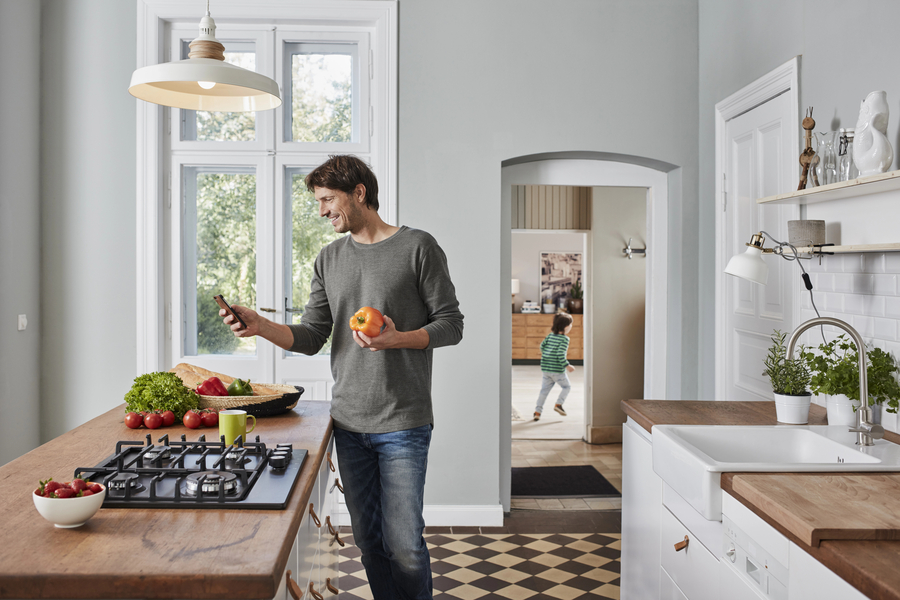 The first thing you want to do is to move any high-intensity task lighting off the ceiling and directly where it’s needed. In most cases, we’d recommend undercabinet LED tape at a 4000K cool light ideal for chopping or seasoning. You’ll get focused lighting where you need it without flooding the rest of the room.